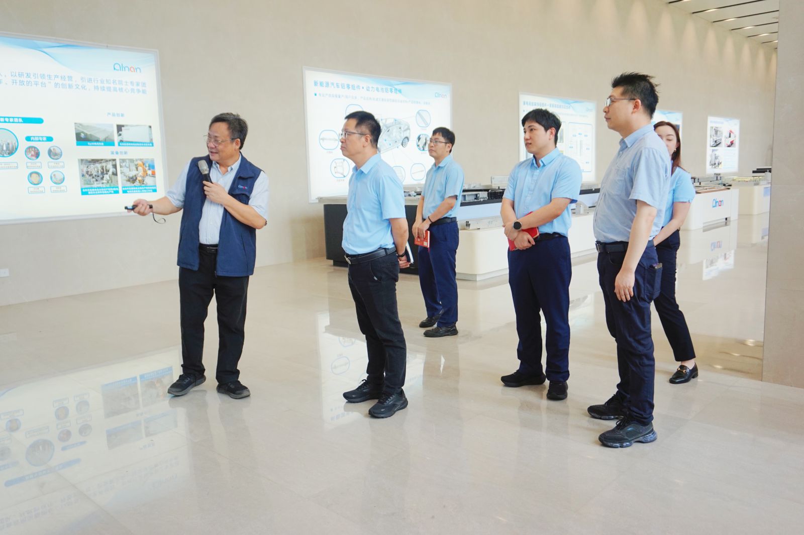 ? 鄭玉林陪同馮軍一行參觀了公司展廳及車間,介紹了生產(chǎn)運(yùn)營(yíng)、技術(shù)研發(fā)、產(chǎn)品結(jié)構(gòu)等情況,尤其對(duì)新能源汽車系列產(chǎn)品市場(chǎng)及廣闊的發(fā)展前景做了重點(diǎn)介紹。隨后,雙方就進(jìn)一步開展合作進(jìn)行深度交流。